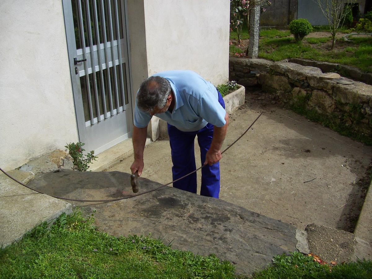 Como el muro de piedra es irregular, pra que quedase la base bien firme le hice un rebaje comn una amoladora