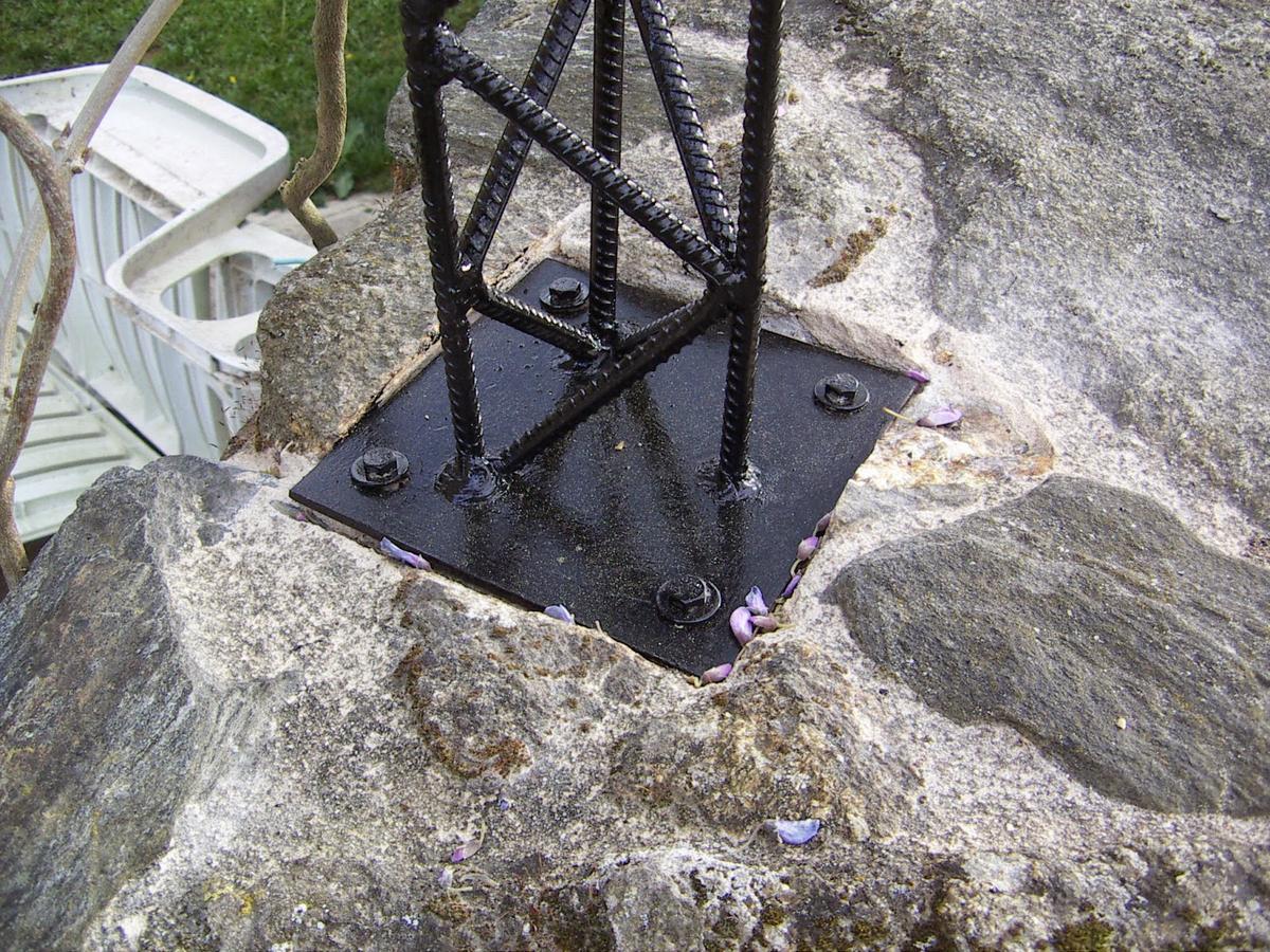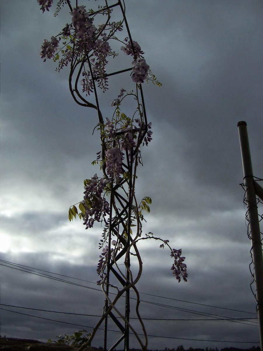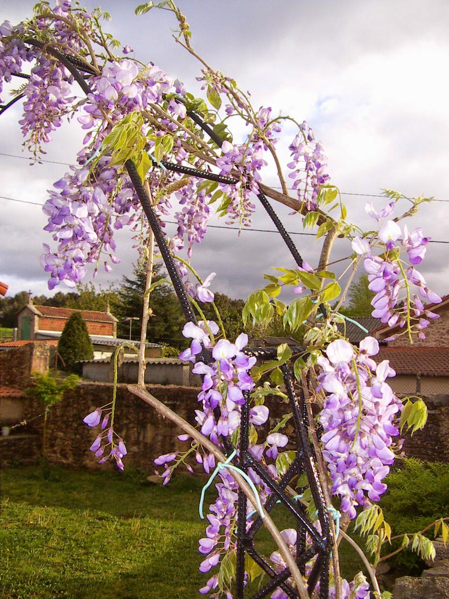 La otra parte del arco va simplemente atornillada a la pared y..ya tenemos el arco terminado. Ahora lo que queda es poner alguna planta que se adpte a é y yo he puesto unaglicínea que ya tenía un tamaño considerable....