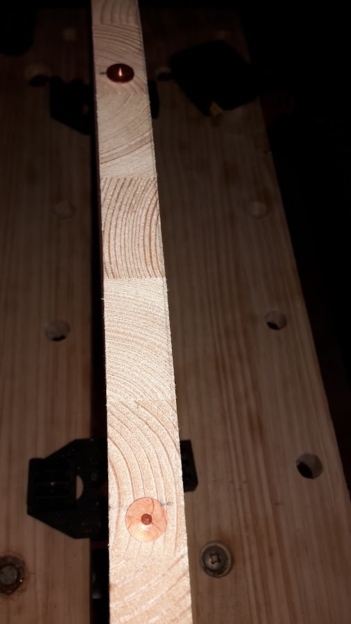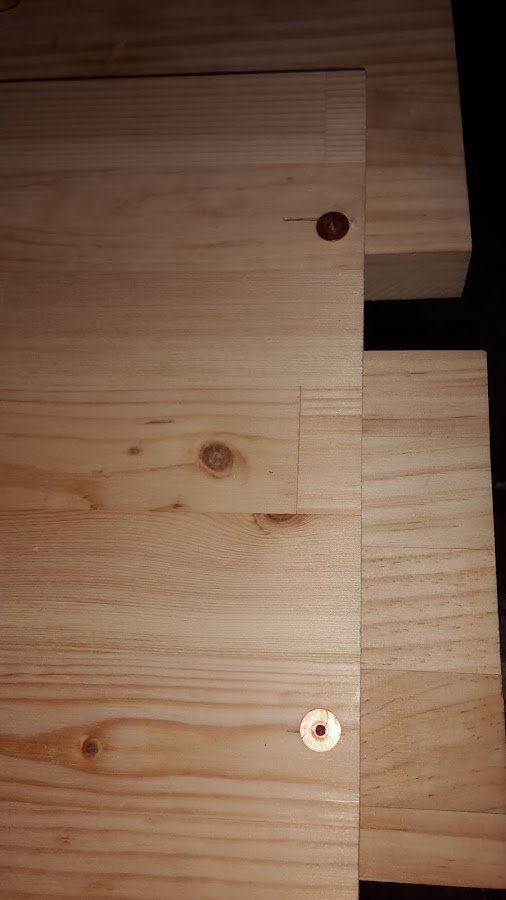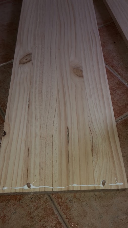 En la foto se puede ver como solamente puse dos por tabla y cola blanca para que quede bien sujeta