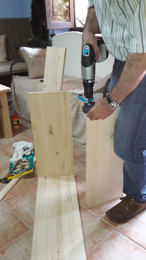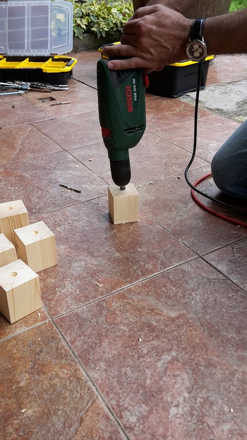 Vamos a empezar ensamblando el cuerpo principal con tubillones.Hacemos los agujeros con el taladro donde irán ubicados los tubillones
