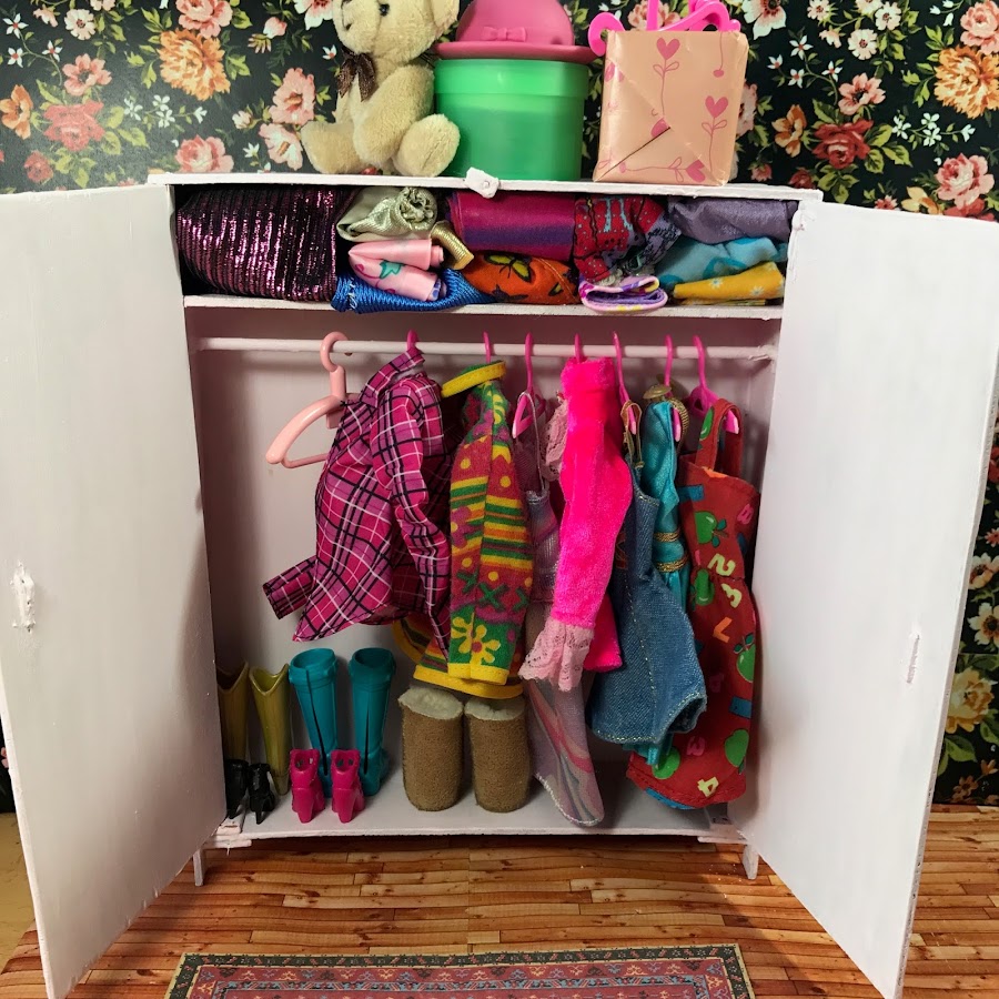 Me gustaría enseñaros como he restaurado el único armario de muñecas Barbie que yo he tenido. Mi padre lo construyó cuando yo era pequeña junto con un montón de muebles más de madera chapada que aún conservo.