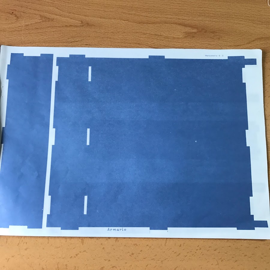 Las medidas y plantillas están sacadas de un librito de marquetería de la Editorial Miguel A. Salvatella de Barcelona. Concretamente este armario viene en el cuadernillo número 6.