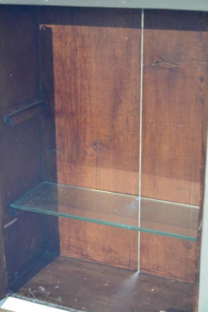 En el interior había solamente una estantería de vidrio, y como faltaba la otra, hemos cortado a medida una madera para hacer un segundo estante.