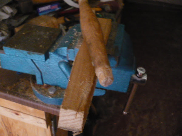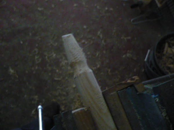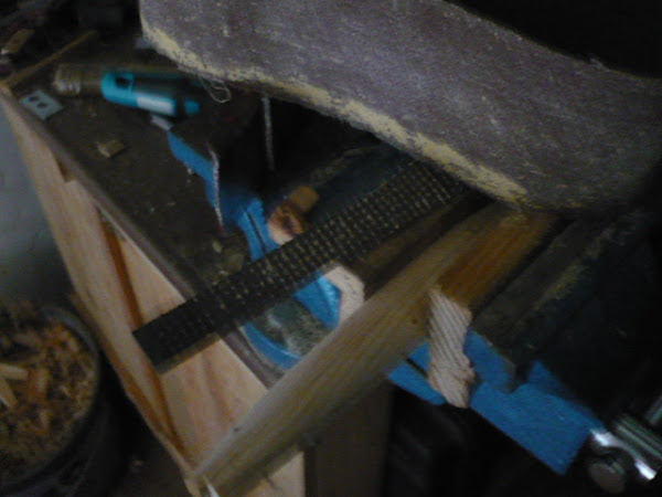 Como en la foto no se ve bien, lo voy a explicar. Primero se pasa el cepillo, para posteriormente terminar de redondear con la escofina. Después, con una banda de lijadora de banda, igualo la superficie.