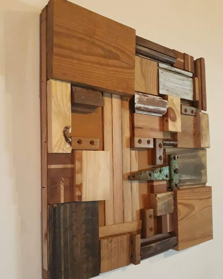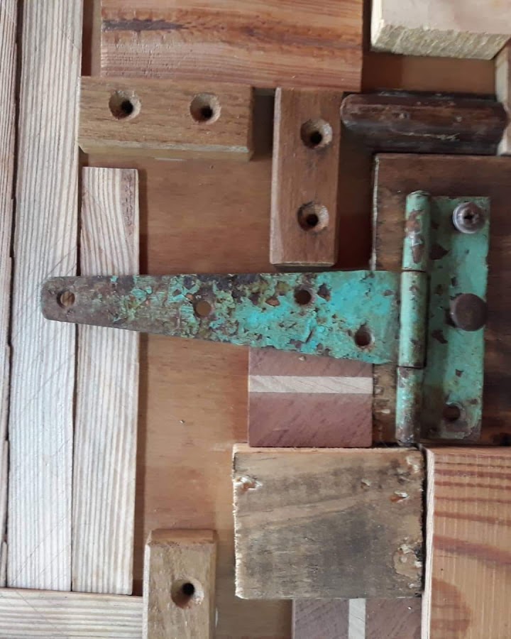 A último momento necesité sumarle alguna textura diferente,si bien las maderas eran variadas necesitaba "algo más" y le sumé una bisagra antigua.
