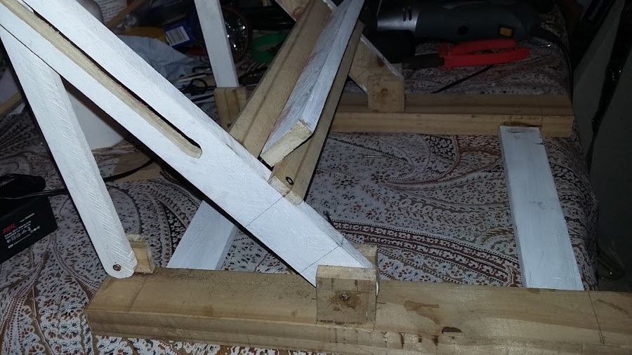 Medí, corté y empecé a armar las partes, con paciencia, encolé las partes que quedan fijas, además de poner unos tarugos que hice con unos palillos para brochetas, pues los tarugos que compré en la ferretería eran demasiado gruesos, casi del espesor de la madera más fina, que apenas tiene 1 cm.
