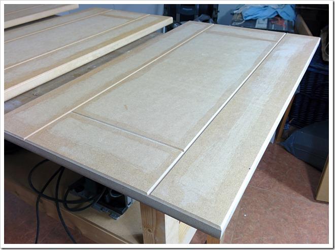 La cosa va un poco lenta últimamente, pero ya estoy finalizando mis nuevas puertas para los armarios de la cocina. Ya están todas hechas, y tienen aplicadas las manos de sellante. Tan solo queda por aplicar varias manos de pintura.