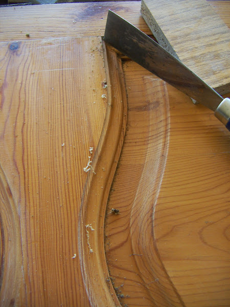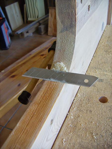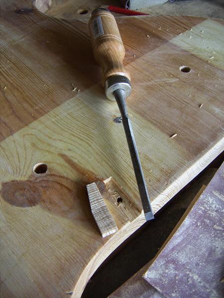 Encolamos el tubillón y una vez seca la cola igualamos la superficie con un formón.