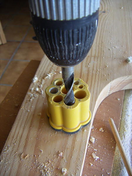 Cuando hagamos uniones con tubillones, es muy importante hacer el agujero en ángulo recto y para ello podemos utilizar una guía para la broca