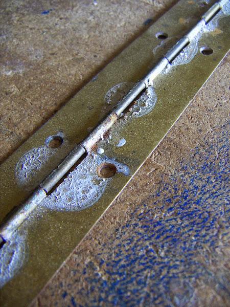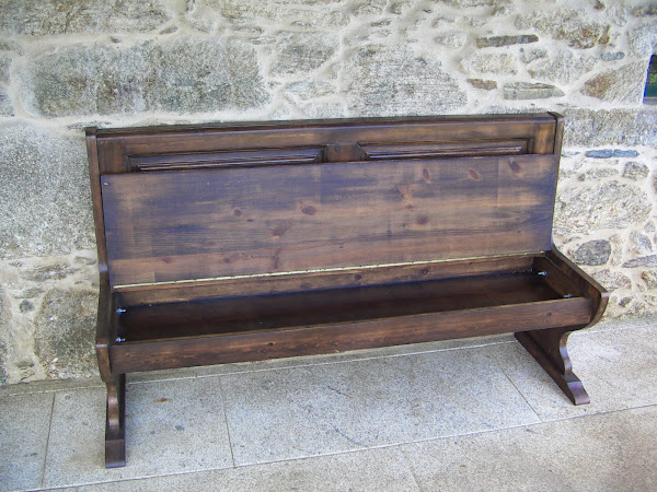 Estos bancos tienen un cajón en el asiento y , las bisagras están oxidadas con restos de barniz y suciedad ...