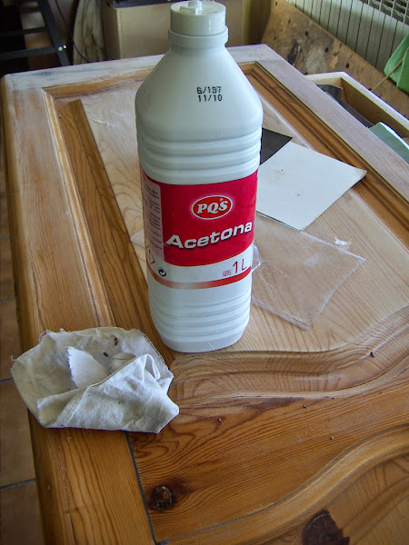 Una buena forma es limpiar la madera frotándola con alcohol o acetona. Yo suelo utilizar acetona y la pongo en un pulverizador para trabajar más rápida y cómodamente