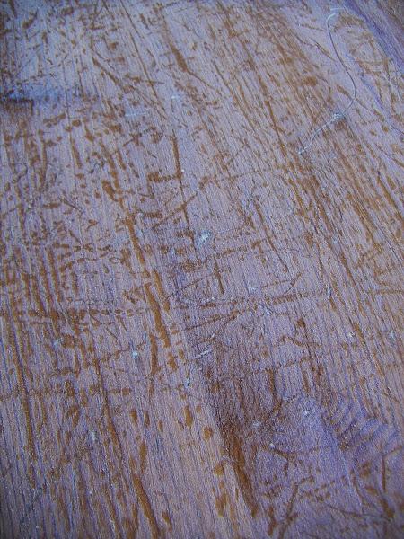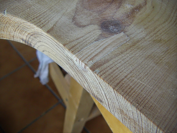 Esta es una de la base de los asientos. A simple vista, antes de eliminar el barniz ya se puede ver que está rallada pero...para ser realmente consciente del verdadero estado en que se encuentra sólo tendremos que pasar una lija y...saldrán a la luz todos los desperfectos..