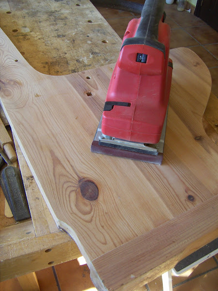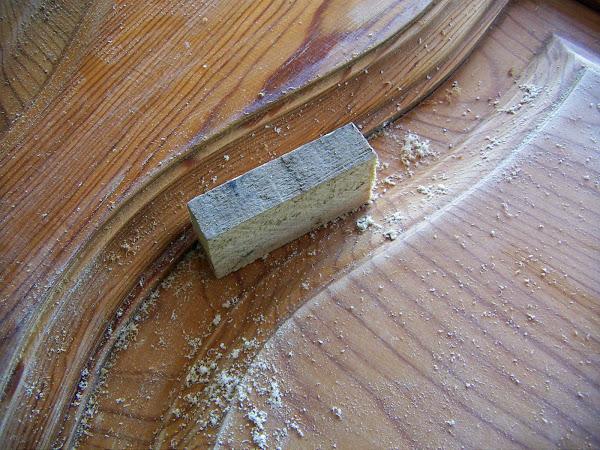 ...he rellenado también un hueco que había entre las dos piezas del respaldo.Dejamos siempre algo de sobrante para igualar después la superficie.