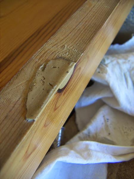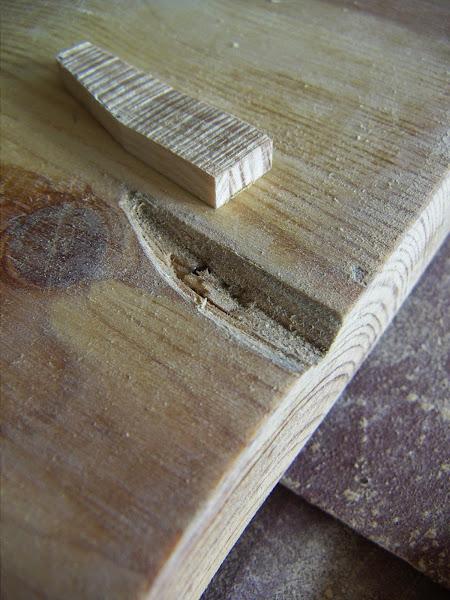 Como en este caso los bancos irán teñidos y el desperfecto ya es algo considerable, lo que haré será rellenarlos con madera.
