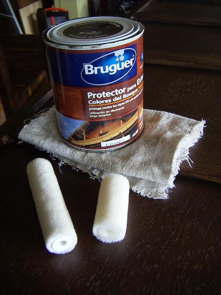 Después de arreglar todos los desperfectos, como los bancos estarán en el exterior les daré un barniz especial para estos casos , en concreto uno de Bruguer que, los tenéis en casi todas las gamas de color.