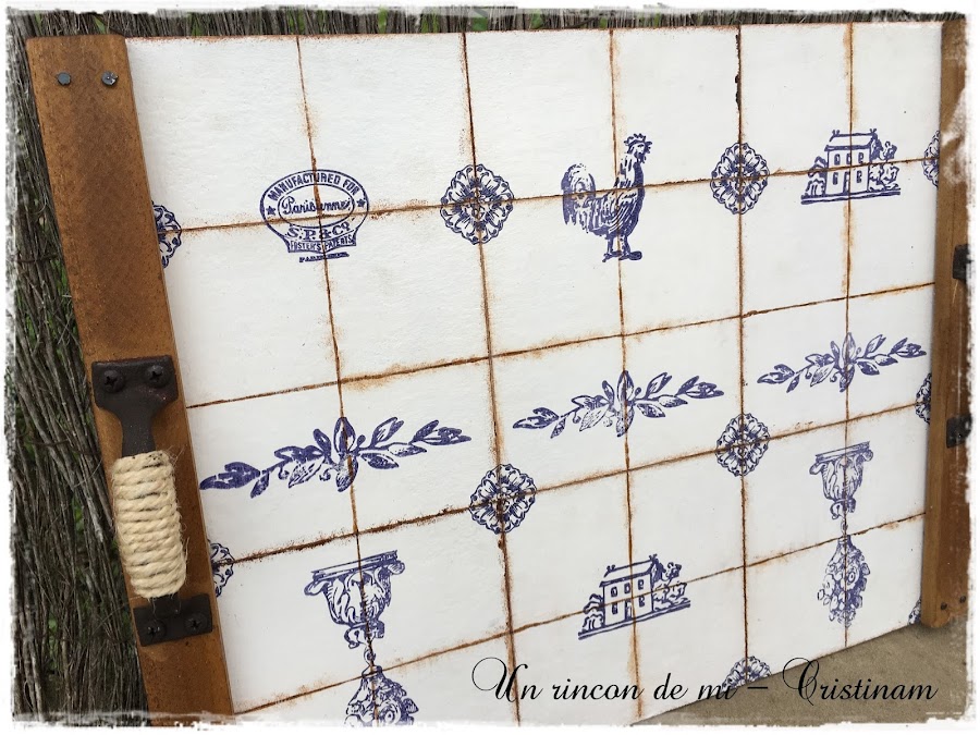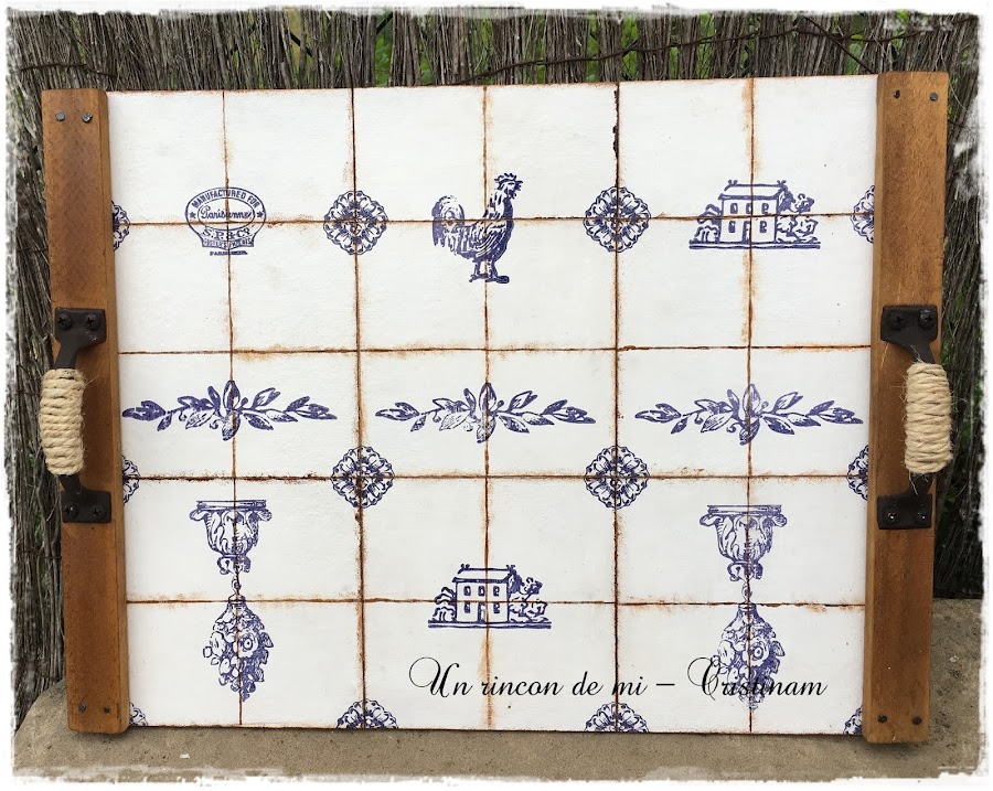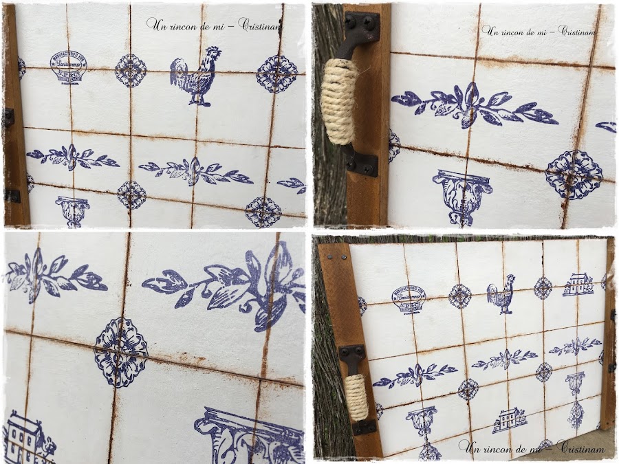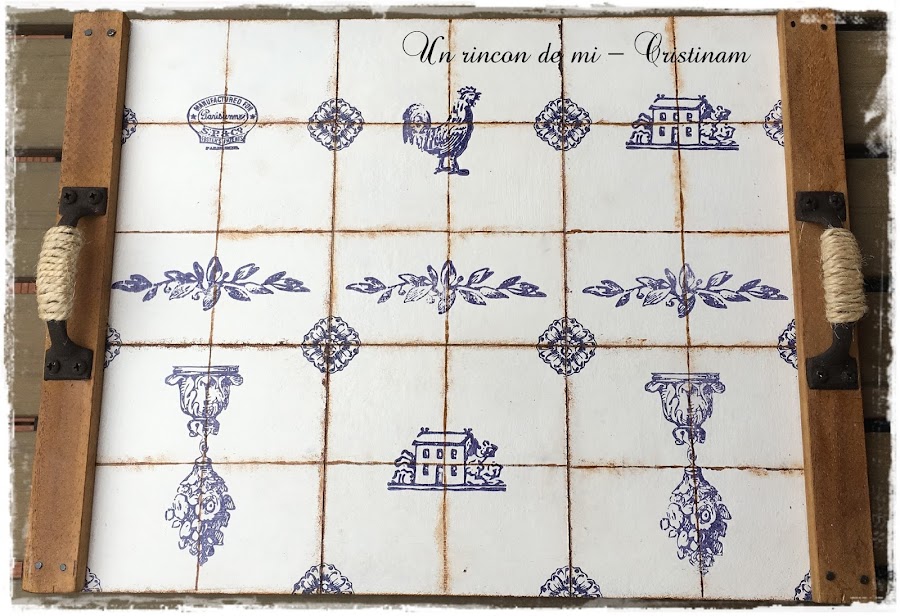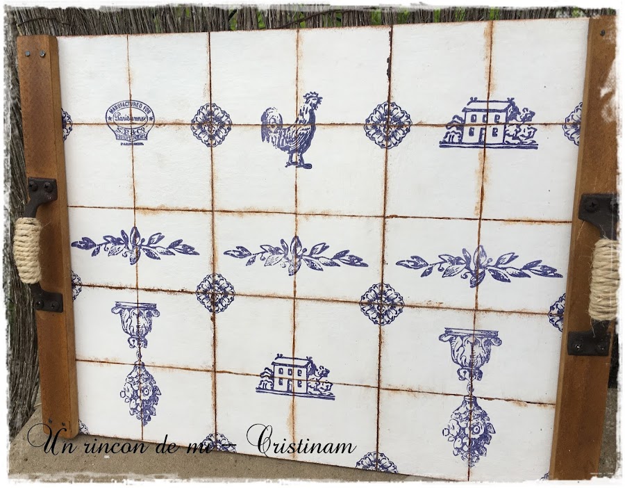 Esther me planteo el reto de hacer algo temática azulejos y yo he realizado esta bandeja que os muestro hoy.