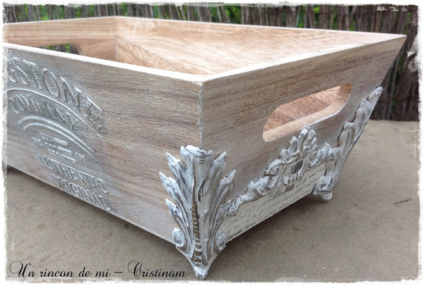 Hoy os muestro esta bandeja de madera natural que he decorado con mis moldes de IOD y un stencil