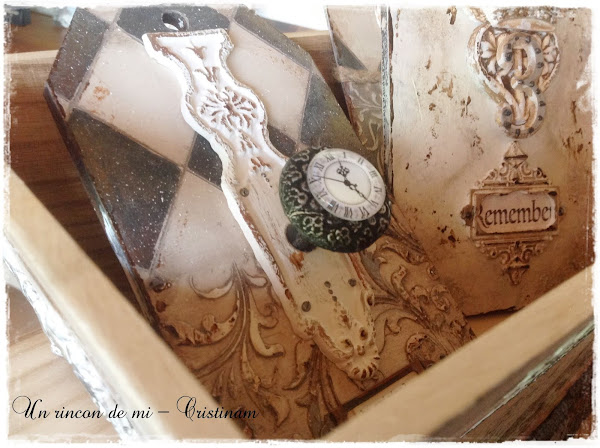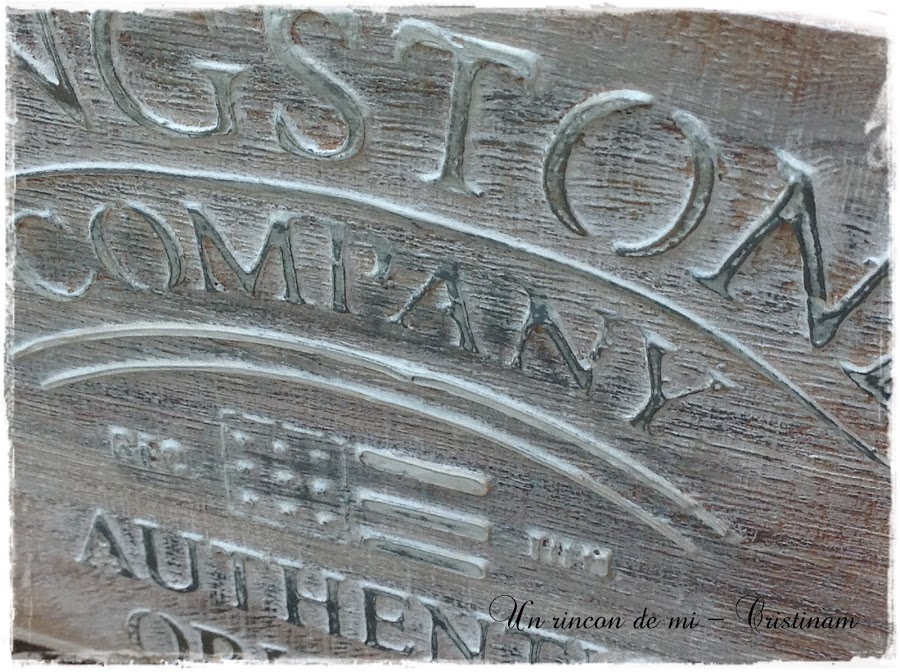 Cada lateral tiene un texto realizado con stencil y pasta , luego lo he matizado con ceras