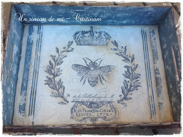 Quiero enseñaros esta bandeja que he decorado con mis sellos de la marca IOD .