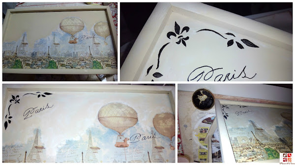 Después dibujé a mano alzada la palabra de París que venía en la servi y le hice unos motivos en la esquina.