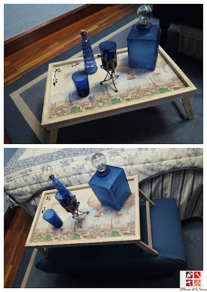 También es el color preferido de mi cuñada y vi la oportunidad de usar una servilleta nueva que había comprado muy bonita cuando hace unas semanas me pidió que le tuneara una bandeja que tenía por casa, ya que no la gustaba, así es que el dúo estaba claro, servilleta nueva con bandeja nueva.