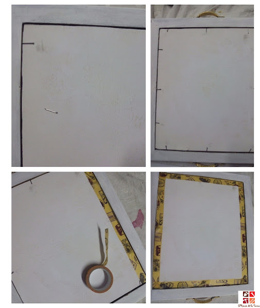Después llegó el turno a la parte trasera, para fijar bien el tablero clavé unas puntas sin cabeza alrededor de todo el marco y para que no se vieran pegué cinta washitape alrededor.