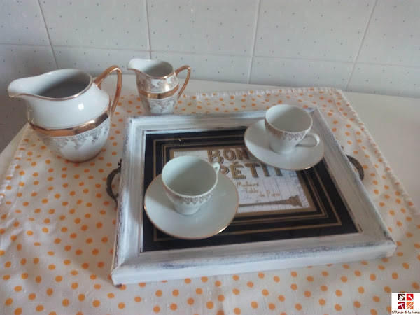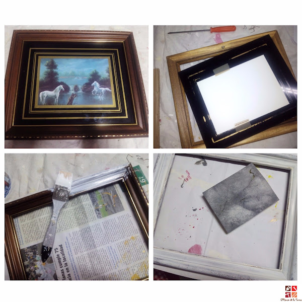 la primera, es un cuadro encontrado en la calle y lo he reciclado y reconvertido en una sencilla bandeja para servir el café o como elemento decorativo, y la segunda es la típica caja de fruta que igualmente he reciclado ...pero....os enseño los pasos y si puedo inspiraros con alguna idea, tanto mejor.