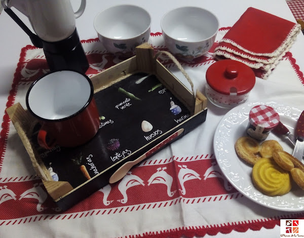Y vamos con la segunda bandeja, esta vez la he hecho , como no, de una caja de fruta, las cajas más socorridas y tuneadas por nosotras.