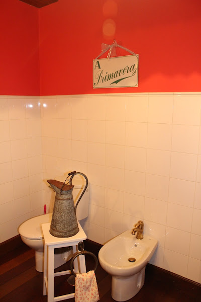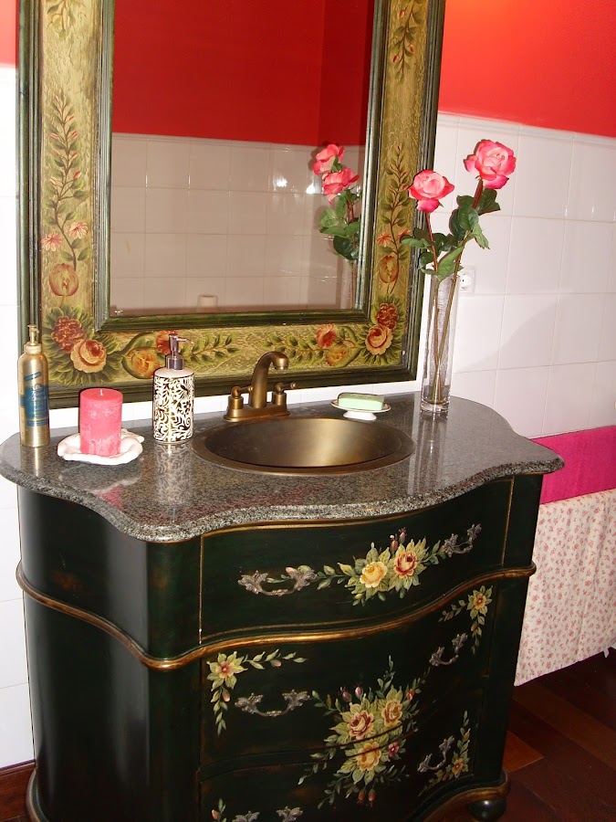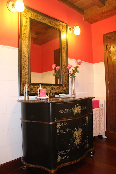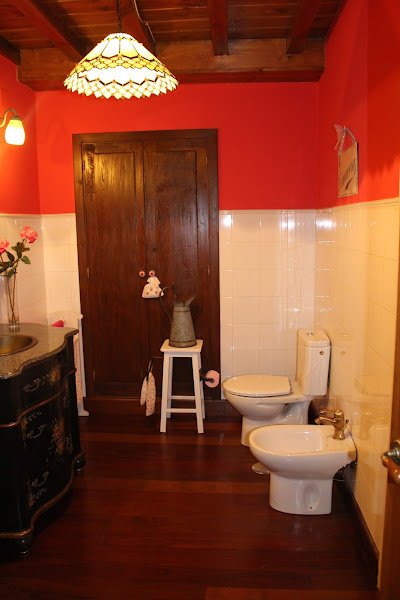 Lo llamamos baño rosa para distinguirlo del que está pintado en color verde. Este está pintado en un rosa tan fuerte que parece rojo.