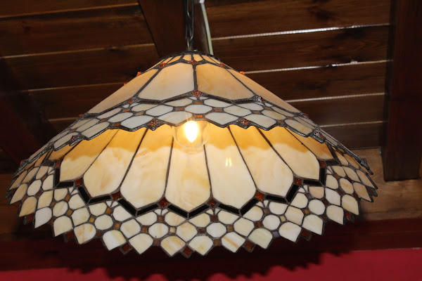 La lámpara es de Tiffany, comprada en una tienda de Monforte de Lemos. Nos costó mucho encontrar alguna que nos gustara pero, al final, pensamos que esta queda bien con la decoración del cuarto de baño.