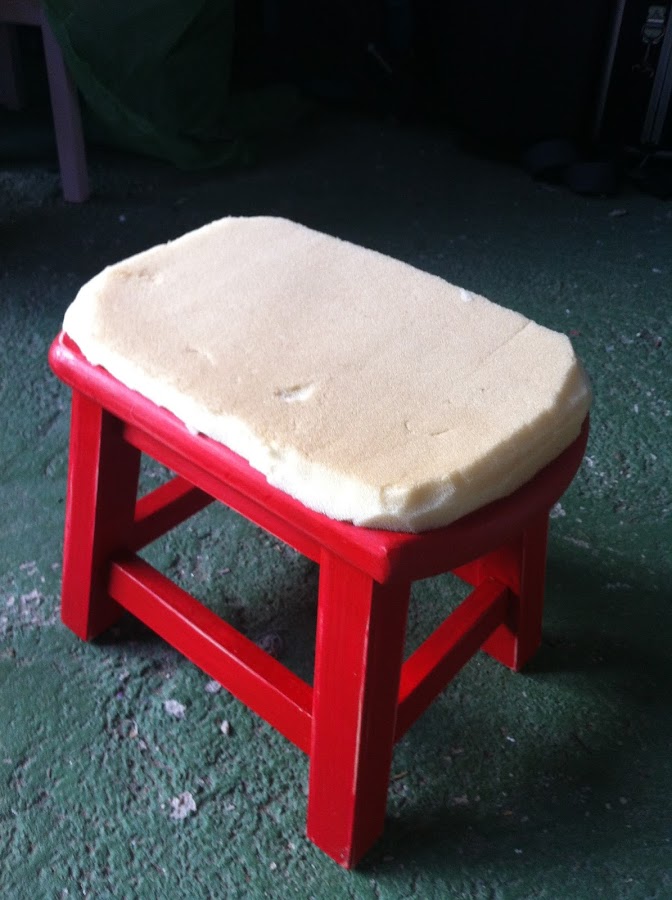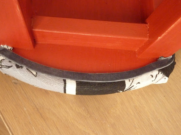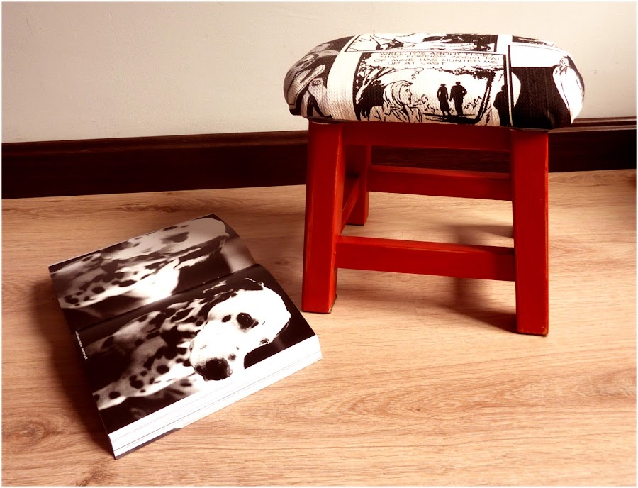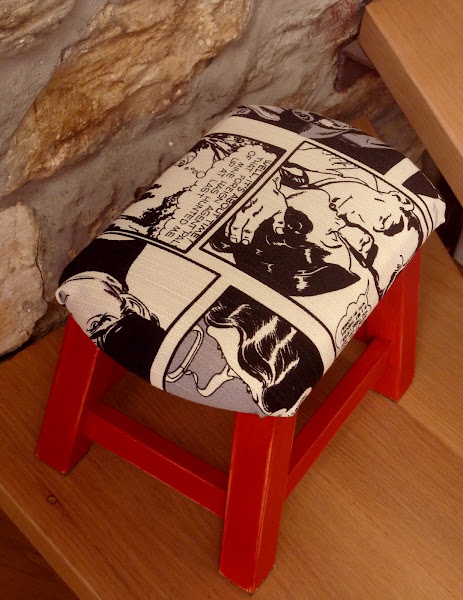 Para tapizar la banqueta usamos un resto de tela que nos quedó de la silla de cómic que colgamos hace ya un tiempo.