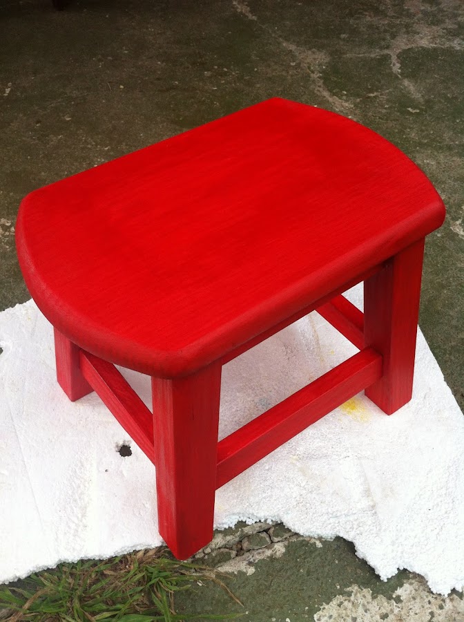 Ya os dijimos alguna vez que nos resultaba muy complicado encontrar muebles pequeñitos...lo más fácil es encontrarlos en tiendas de manualidades ó mercados de madera sin tratar; como es el caso de esta banqueta que compramos a un artesano este verano: