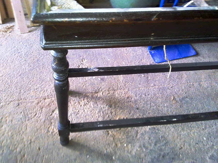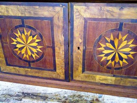 Una vez analizada la pieza, procedemos a desmontarla y a decapar. Se trata de un proceso laborioso, especialmente cuando ?hay tantas capas de barniz. En la siguiente foto se ve el detalle de la puerta lijada y con una aplicación de tinte.