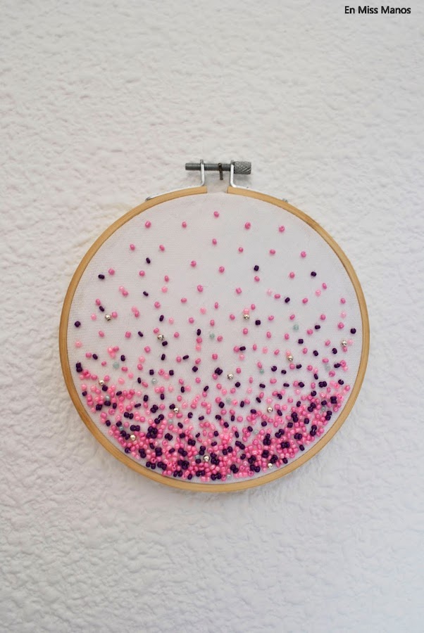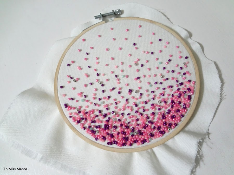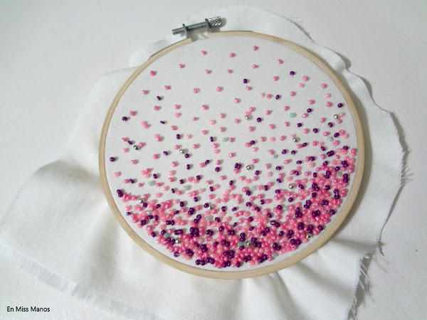 Hoy os traigo un bastidor bordado, pero no bordado con puntadas, si no con abalorios.