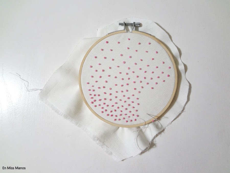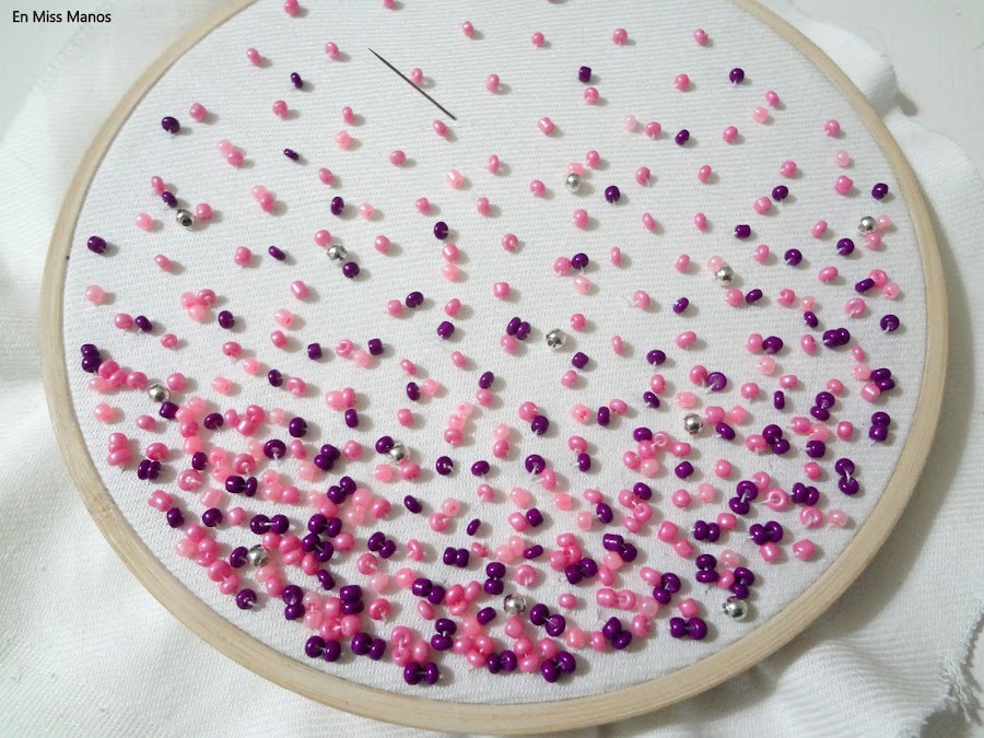 Quería rellenar toda la tela del bastidor con abalorios hasta formar un degradado de color, pero al final no lo acabé rellenando del todo, creo que me habría vuelto loca!!