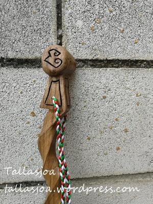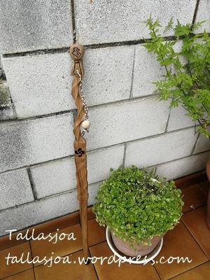 La he realizado en madera de olmo , y lleva varios símbolos vascos , tanto en la empuñadura como en el cuerpo del bastón.