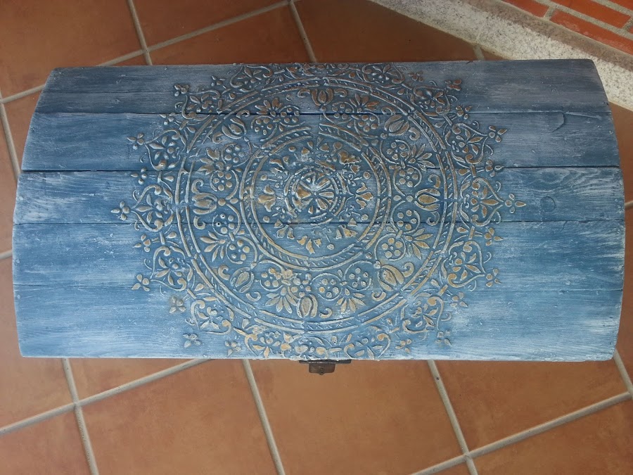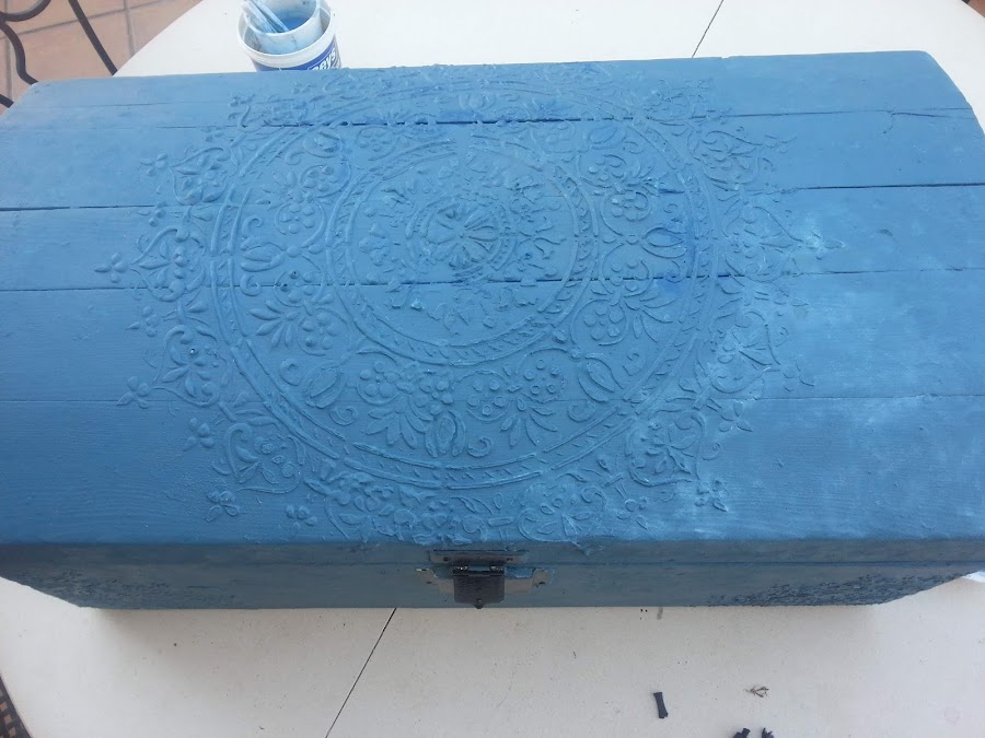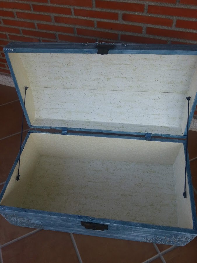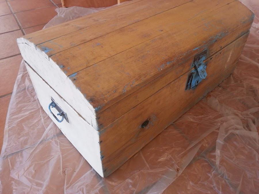 Bueno así queda el baúl ya con su imprimación de base y su pintura acrílica.