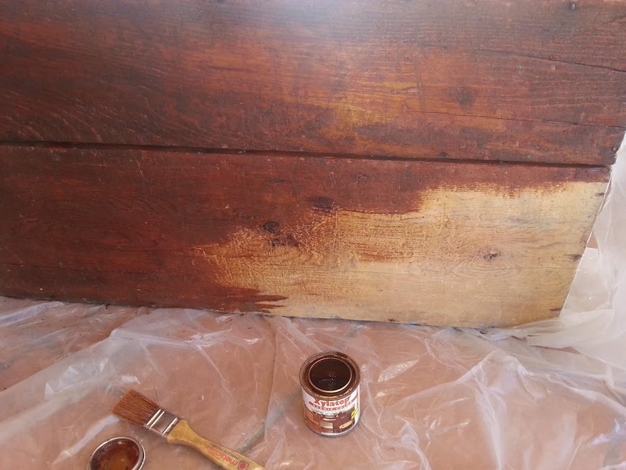 La base de baúl, una vez bien lijada procedo a darla un barniz con color para protegerla bien.