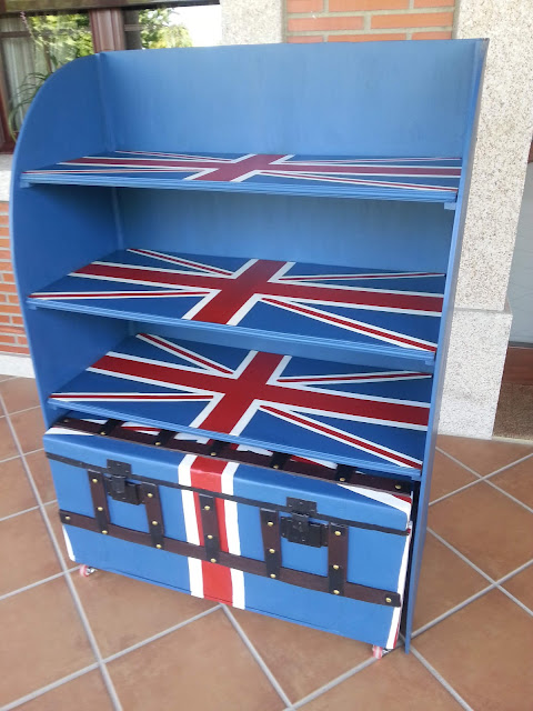 Este es el aspecto de la estantería y el baúl. Logro que el dibujo británico tenga uniformidad con la estantería seguida del baúl.