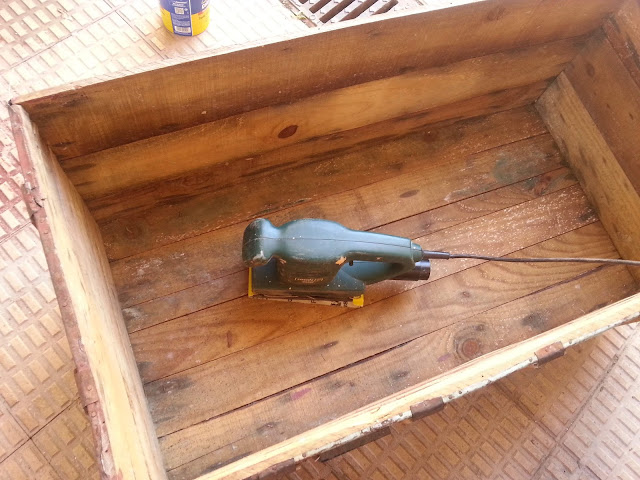 Vamos con el interior, como ya dije la madera es de pésima calidad, pero aun así la lijo bien y remacho los clavos que se encuentran a la vista.