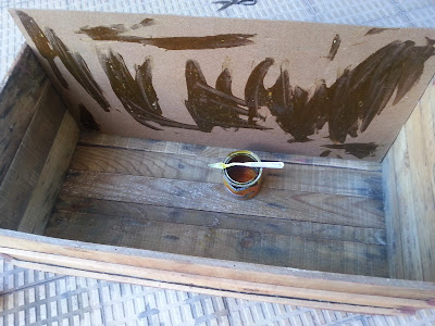A la parte de atrás la atornillé un listón de madera de palet para que hiciera soporte y poder poner la bisagras de la tapa.