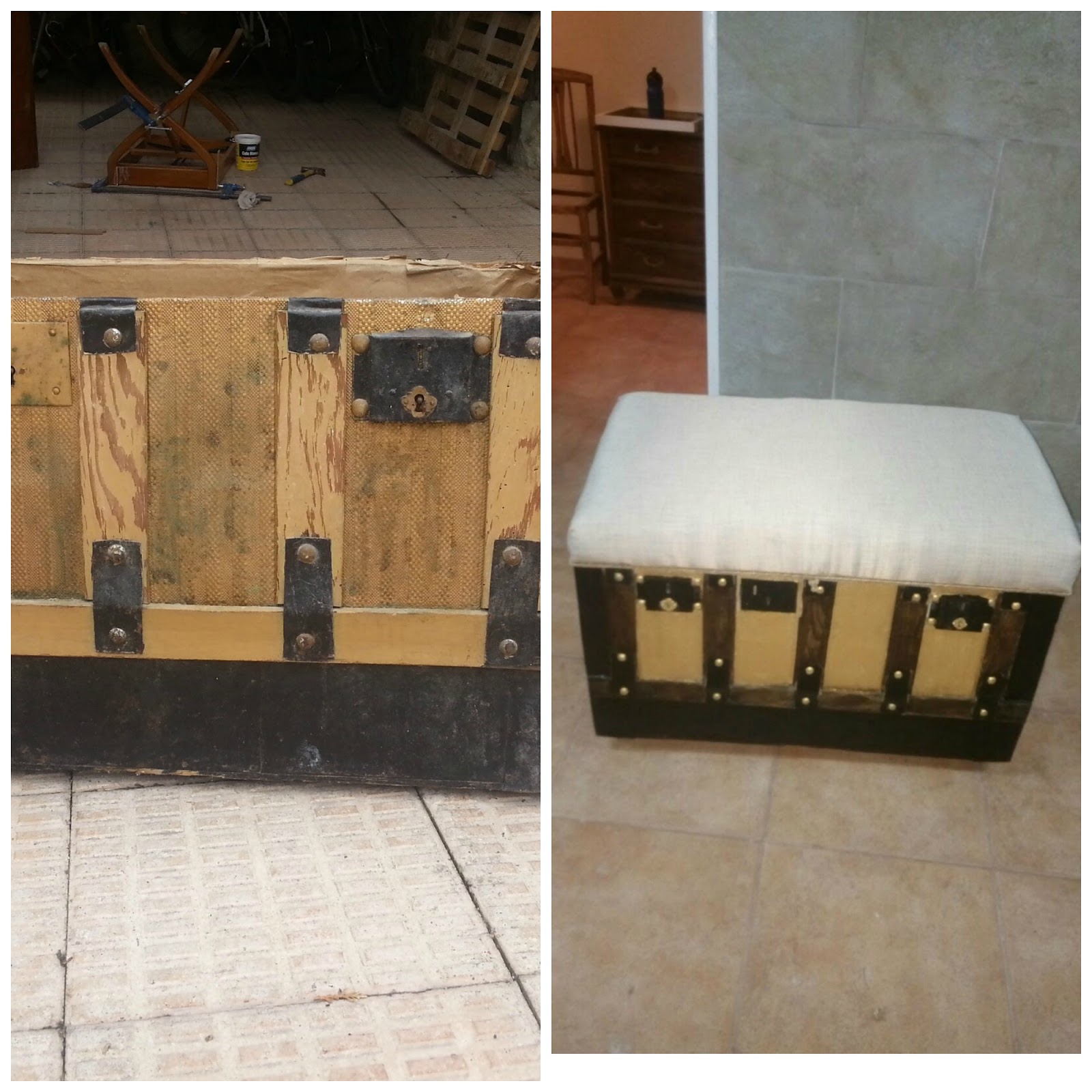 Como ya es conocida mi afición al reciclaje, un día mi vecino José se presentó con dos baúles, tengo que decir que estaban fatal, pero a mis ojos ya veía las posibilidades que tenían de quedar bonitos y prácticos.