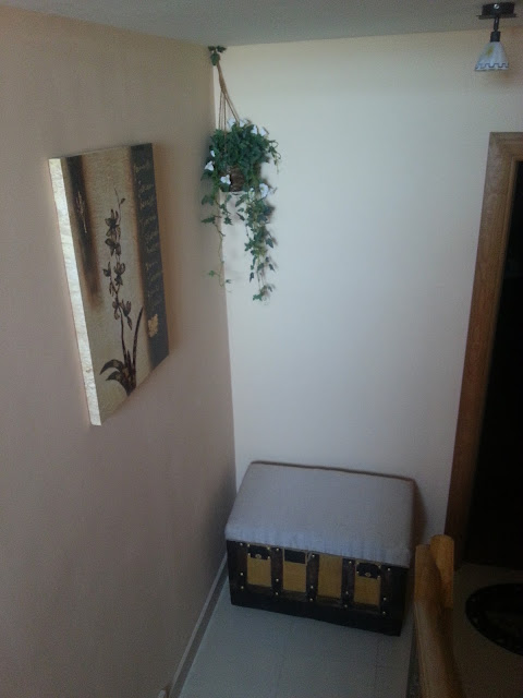 Al final el resultado del baúl, quedó tan bonito que decidió ponerle en el rellano de la escalera, pues para el taller daba pena que se iba a ensuciar.