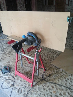 Después con tablero de dm 5mm que me proporciona una empresa que vende garrafas de agua y estos tableros los tienen los embalajes de dichas botellas.