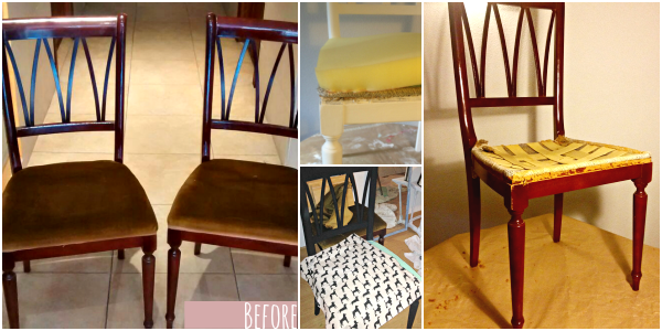 En esta ocasión una de mis amigas consiguió un par de sillas ochenteras, medio destrozadas y bastante aburridas que tras pasar por mis manos se transformaron en dos sillas alegres y vistosas para decorar cualquier hogar.