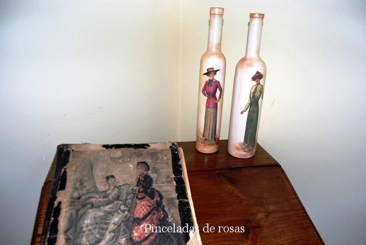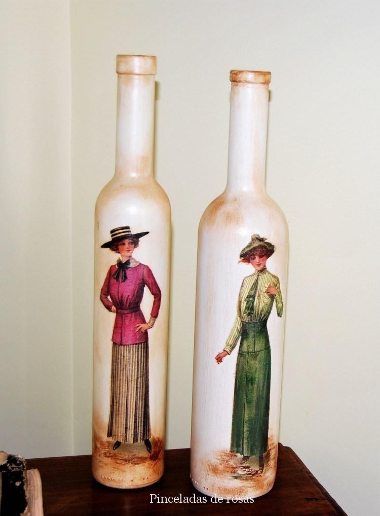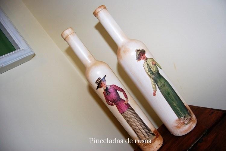 Si tengo alguna predilección o alguna preferencia por darle un segundo uso a alguno de los soportes o envases que habitualmente utilizamos en casa, estas son «Las Botellas» ya sean cristal o de vidrio… me apasiona decorarlas convertirlas en jarrones… floreros… violeteros… en botella para licores…