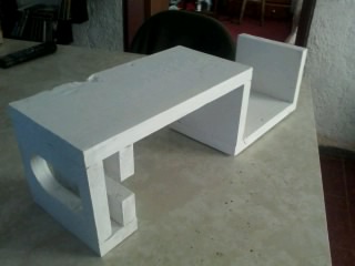Las piezas están encoladas y clavadas a 90°. El lateral que puede verse en la foto tiene una función: allí se coloca el celular y la "ventana" permite verlo mientras está cargando.