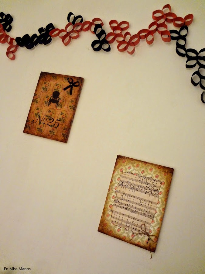 Tras mi visita fugaz a la casa del pueblo necesitaba hacer cosas rápidas para a la vuelta ir decorando poco a poco sin gastar nada, así que con unas maderitas encontradas que tenía en mi casa y unos decoupages con servilletas que ya conoceréis, hice un par de cuadros para una de las habitaciones.