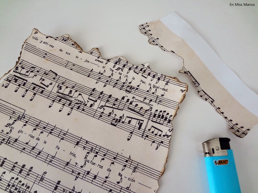 Al otro le puse una partitura impresa quemada por los bordes en el centro y un lacito de cuerda.