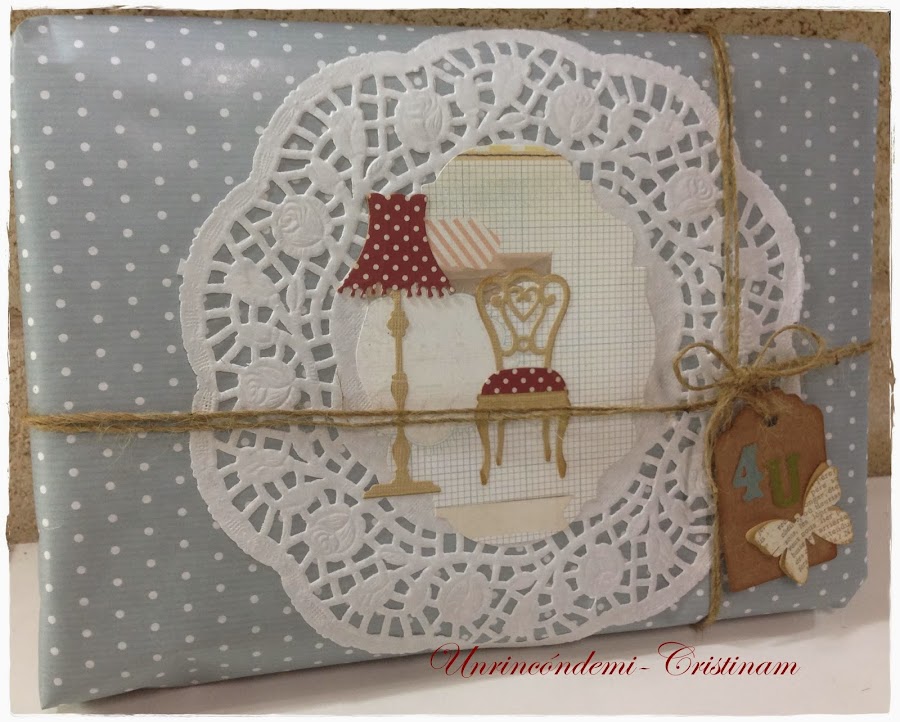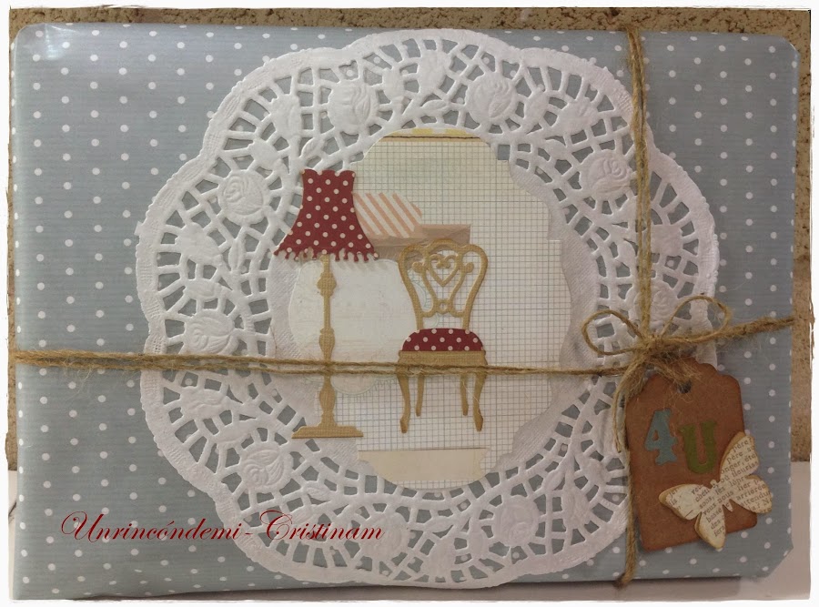 Bueno!!! ahora toca hacer un envoltorio bonito para el regalo.... y he usado troqueles silla,lámpara, tag y flor....